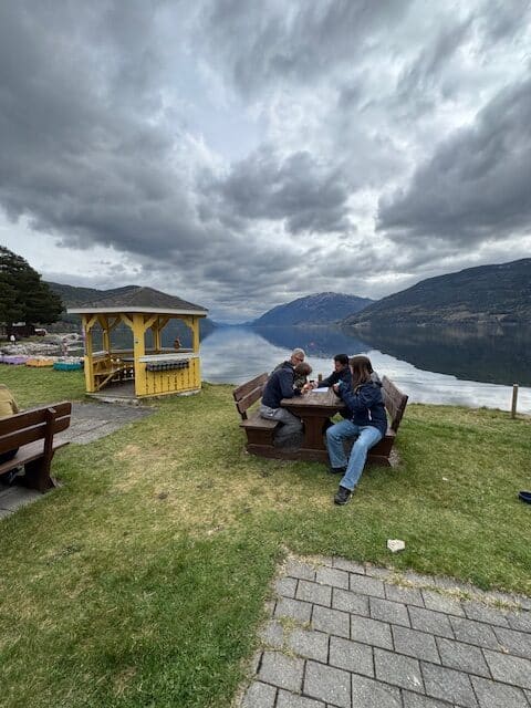 Vår hyggelige kafé og resepsjon er campingplassens sosiale hjerte. Her serverer vi hjemmelaget mat med fokus på lokale råvarer og bærekraftige valg, enten du ønsker en nystekt lokalpizza, fersk bakst eller en kopp økologisk kaffe i vår lune paviljong.