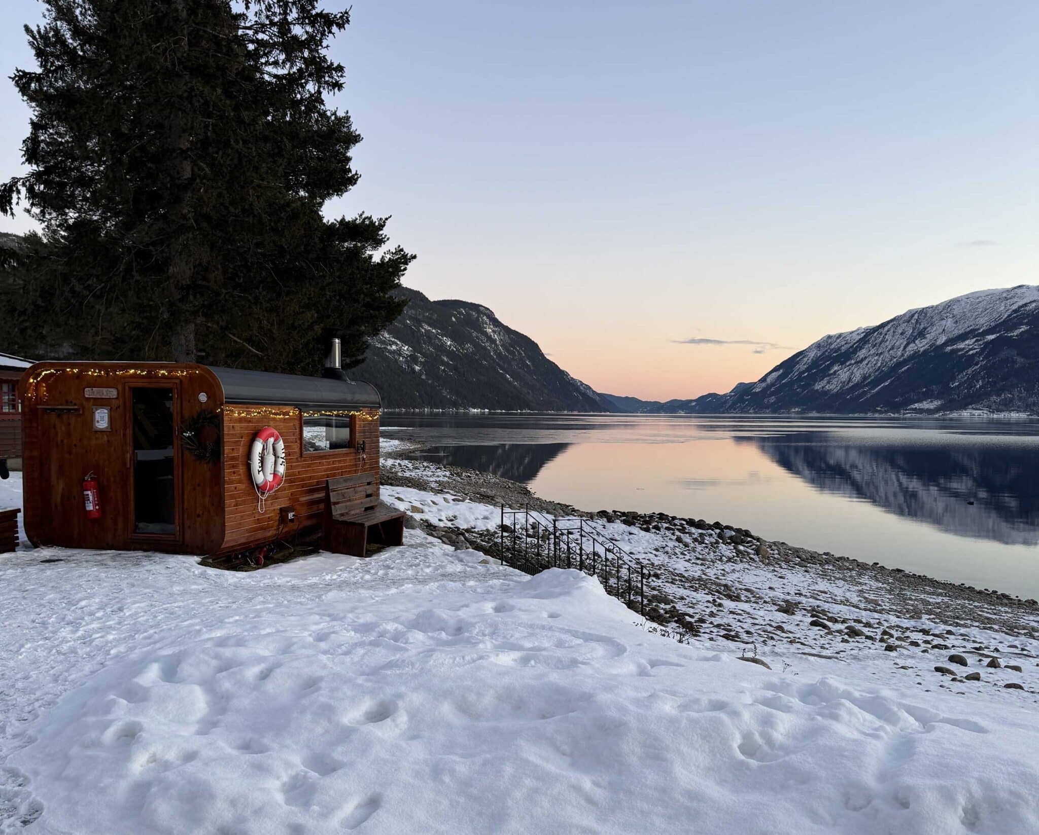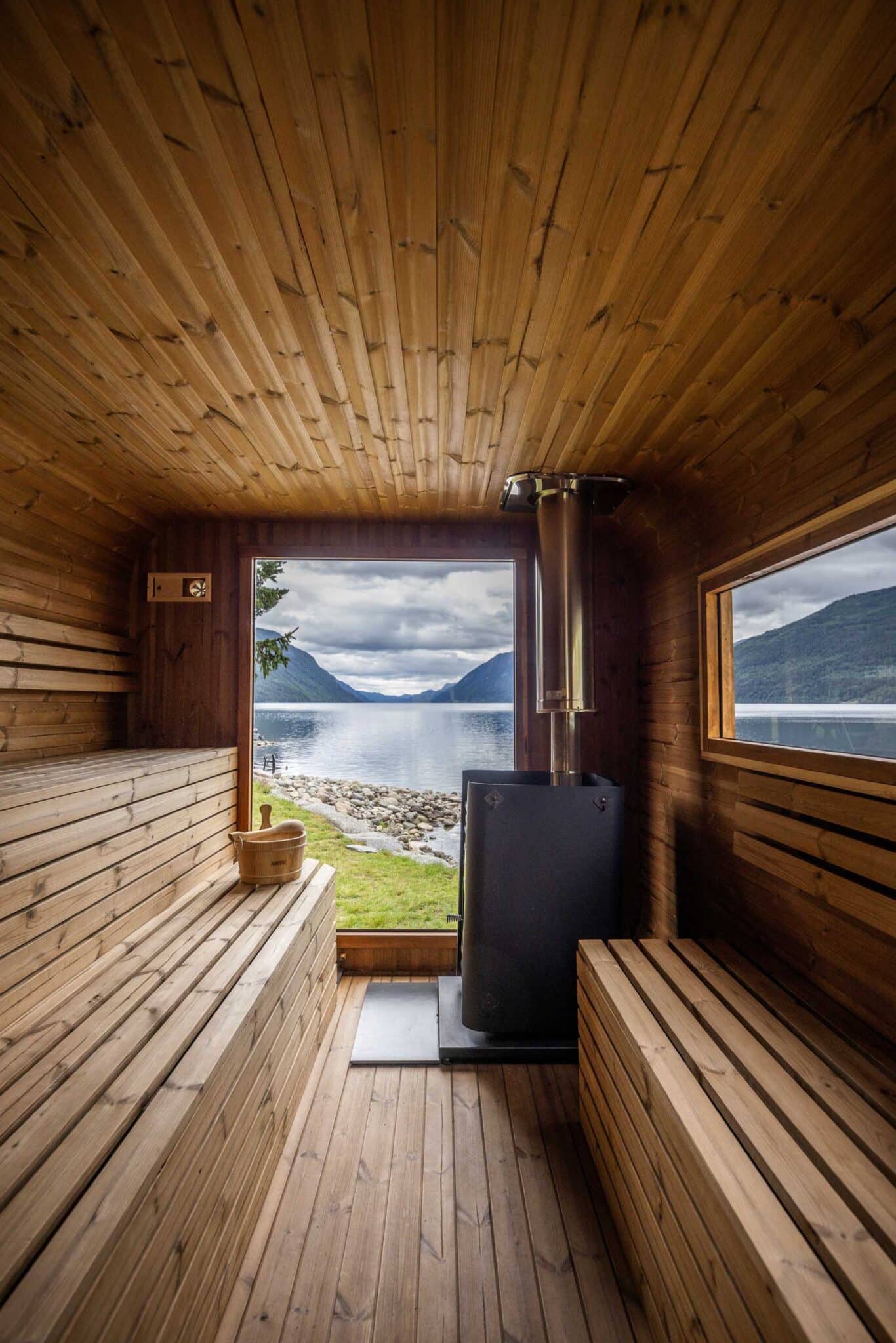 It's in the contrasts that the greatest experiences lie. We've created a slope and stairs all the way down to the water's edge, so you can easily combine a sauna with a refreshing dip. As Tinnsjøen is a regulated lake, the water level and the path down to the water will vary by up to four metres throughout the year - an exciting reminder of the forces of nature that surround us. For those who really want to feel alive, we recommend joining the Facebook group for our local year-round swimmers, where the community and the joy of a cold bath are in focus all year round.